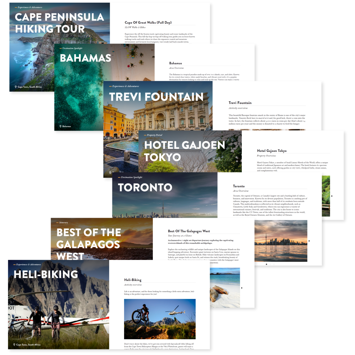 Content Library Inline Editor Itinerary Builder Guest Portals Traveler App Resource Library Media Library Pipeline Management Task Management Customer Support